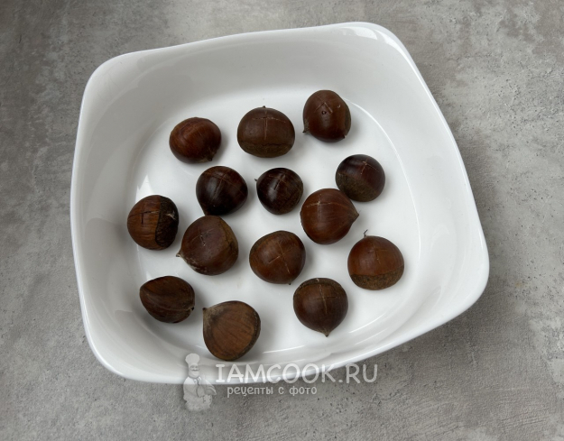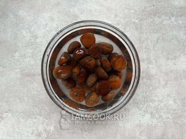 Промойте каштаны под проточной водой. Замочите их в холодной воде на 5-10 минут - это поможет смягчить кожицу и облегчит процесс очистки после запекания.