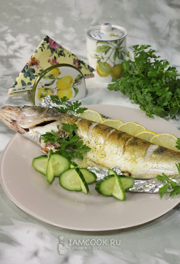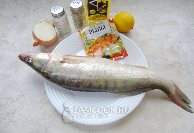 Соберите ингредиенты для приготовления судака в фольге в духовке целиком.