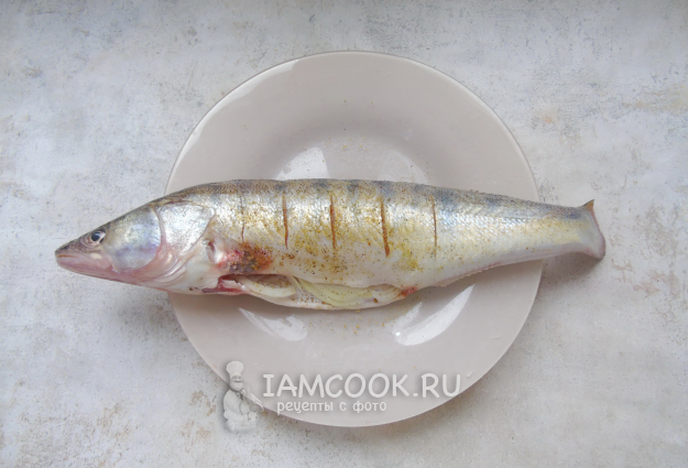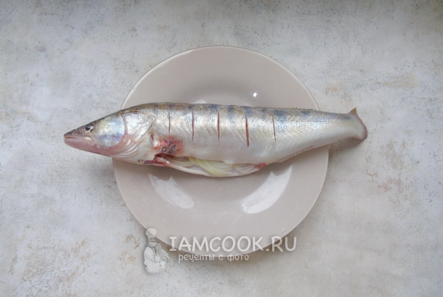 На тушке судака сделайте неглубокие надрезы в нескольких местах.
