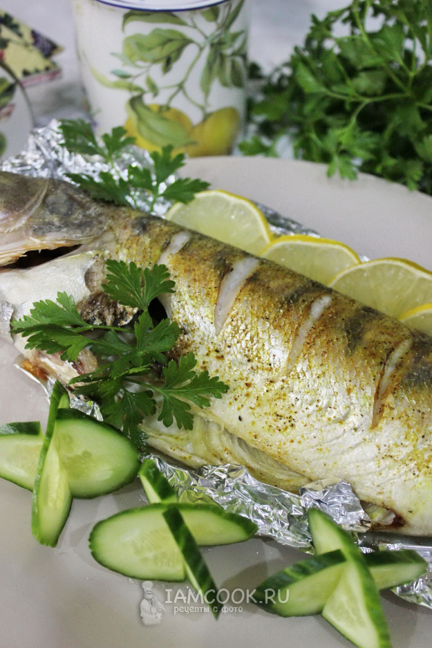 Запекайте судака в фольге в духовке целиком при температуре 180 градусов 20 минут. Затем разверните фольгу и продолжите запекание еще 15-20 минут.
