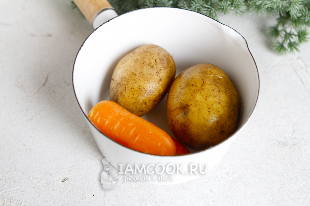 Овощи для салата хорошо промойте, переложите в сотейник или кастрюлю, залейте водой. После закипания воду можно слегка посолить. Варить овощи на среднем огне до готовности. Готовность проверяйте лезвием ножа, оно должно с легкостью входить.