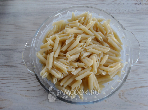 Макароны отварить в подсоленной кипящей воде, помешивая, почти до готовности.