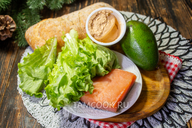 Соберите продукты для приготовления сэндвича из чиабатты с лососем. Творожный сыр вы можете взять тот, который нравится вам. А авокадо заменить, например, свежим огурцом или томатом. Лосося выберите качественного, а еще лучше, если вы засолите его сами в домашних условиях - так вы будете точно уверены в качестве и вкусе рыбы.