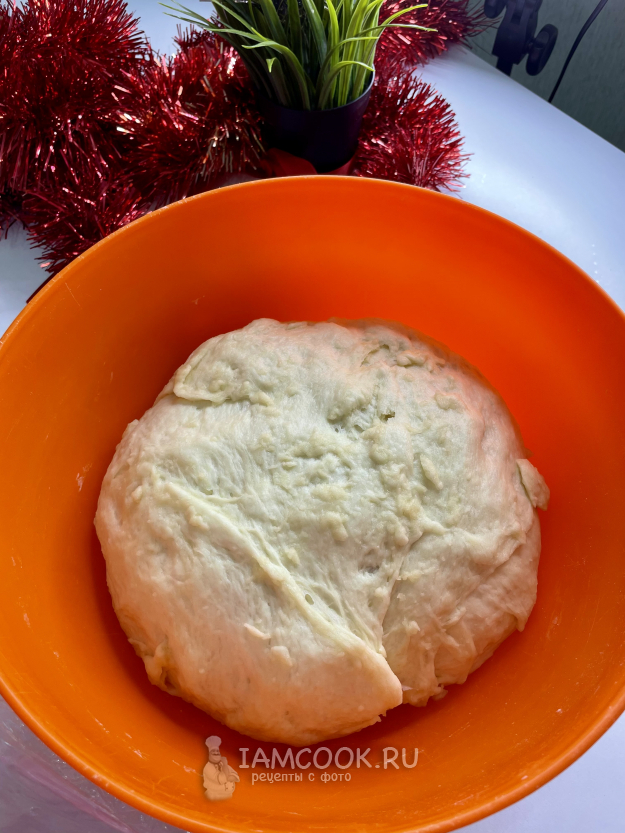 Тесто должно увеличиться в размере почти в два раза. Подошедшее тесто необходимо обмять и дать ему подняться ещё раз, оставив примерно на час.