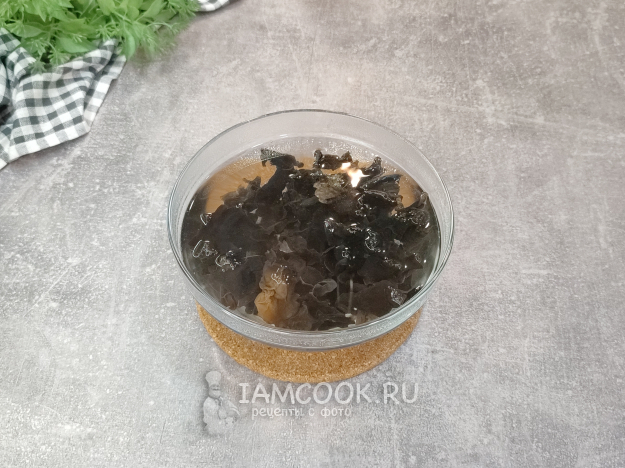 Грибы залейте 1 л кипятка, отставьте пока в сторону, пусть набухнут, на это уйдет минут 10-15.