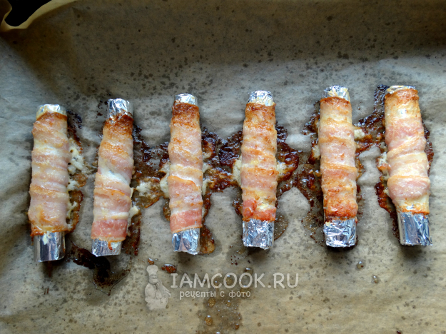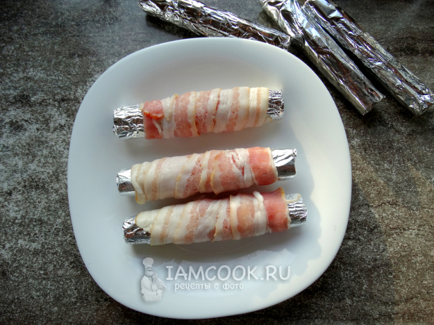 Для роллов из бекона я взяла трубочки из картона, которые обернула фольгой.
