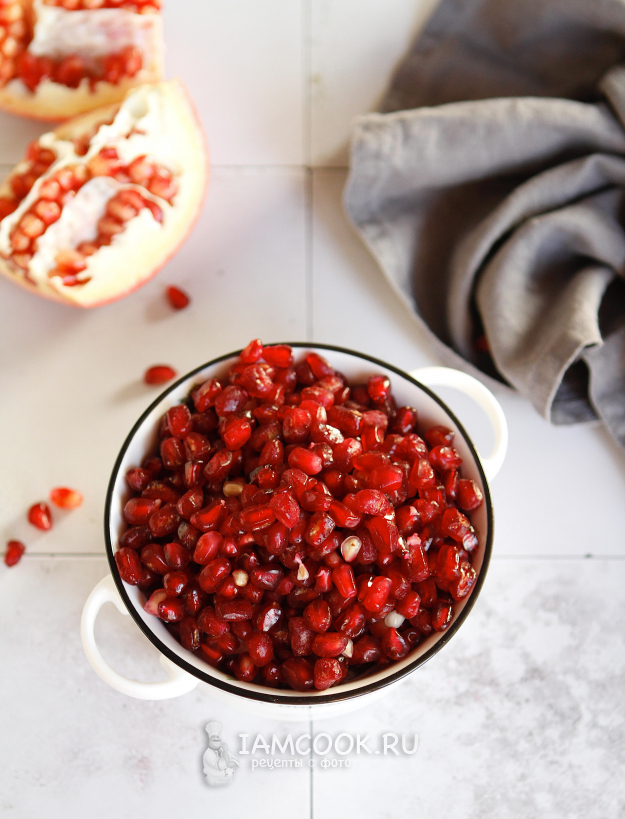 Для заморозки зёрен граната идеально подходят спелые, но при этом упругие плоды. Выбирая гранат, обратите внимание на его вес. Чем тяжелее плод, тем он вкуснее, в нем больше сока и, конечно же, меньше пустот. Внешне гранат тоже должен быть красивым: кожура должна быть равномерно окрашена, обязательно сухой, без вмятин и пятен. В нашем регионе не очень высокая температура, поэтому целые гранаты могут храниться на балконе к примеру до 2-3 месяцев при стабильной температуре. Мы покупаем впрок гранат, храним его на балконе и, кроме того, я еще и замораживаю зерна граната. Зерна граната я добавляю в свекольный салат с гранатом.