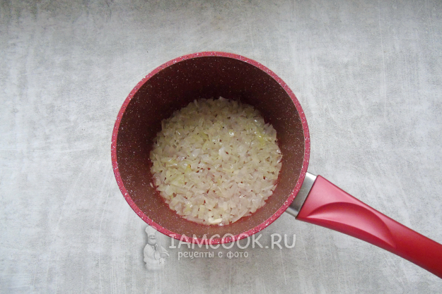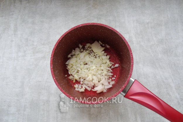 Репчатый лук очистите, помойте и мелко нарежьте. Выложите в кастрюлю с толстым дном или антипригарным покрытием.