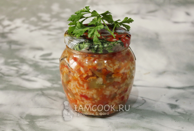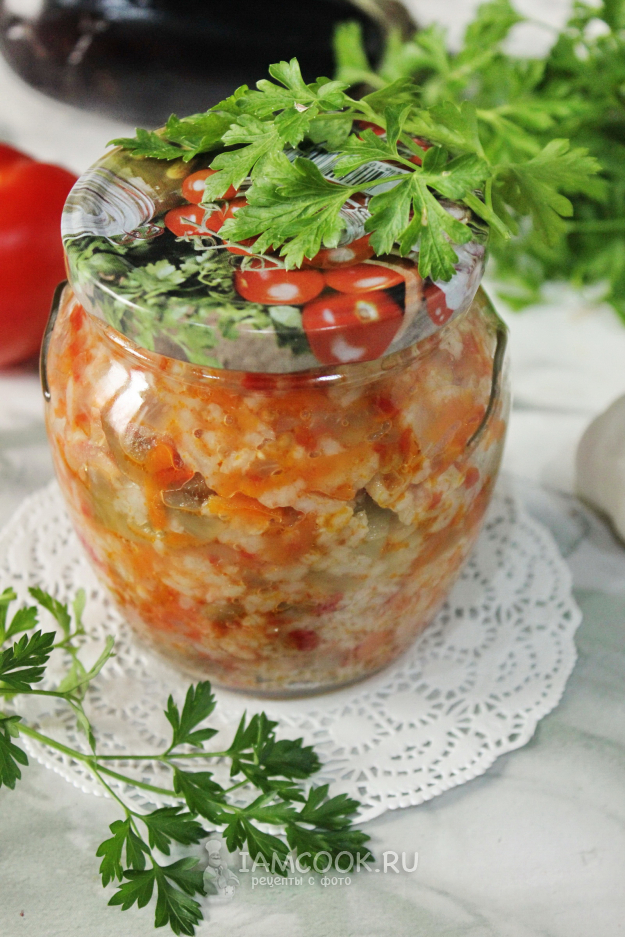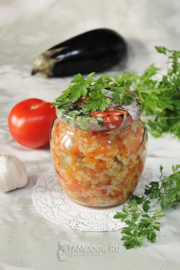 Салат с рисом и баклажанами на зиму готов.