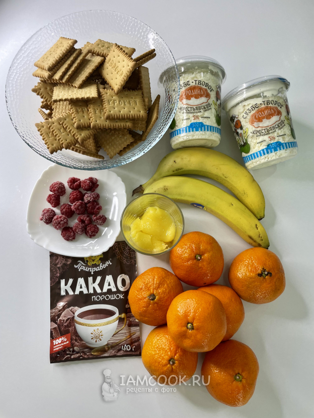 Для приготовления новогоднего мандаринового рулета соберем все необходимые ингредиенты по списку.