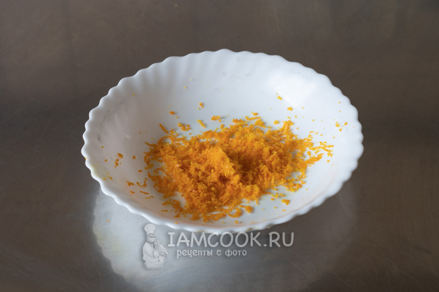 Потрём цедру с третьего апельсина. (Апельсин больше не нужен, можете его съесть.)