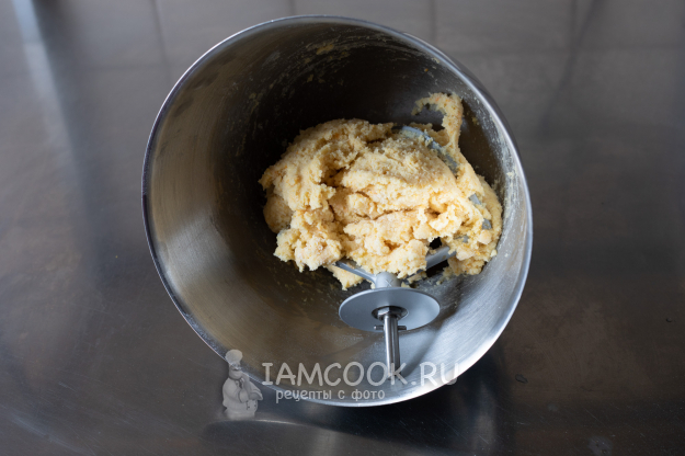 Вымесим тесто из масла, цедры последнего апельсина, муки, сахарного песка, ванильного сахара и яиц.