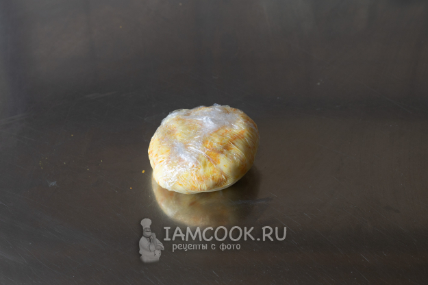 Сформируем плотный комок из масла, обернём его в плёнку и оставим вылёживаться на сутки. (Если хотите более плотные по структуре печеньки, чем у меня, то на последний час перед замесом теста масло можно будет поместить в морозилку.)