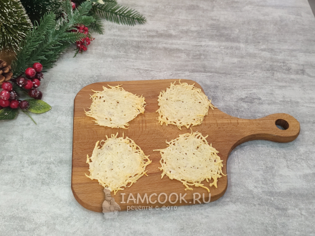 Гренки, которые обязательно кладут в салат, в фаршированных яйцах будут неуместны. Предлагаю заменить их чипсами из пармезана. Я, правда, сильно разогналась, и сделала 4 чипсины (из 40 граммов сыра)😂🤣, в итоге же мне хватило одного чипса - это примерно 10 граммов пармезана.