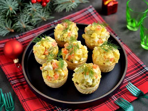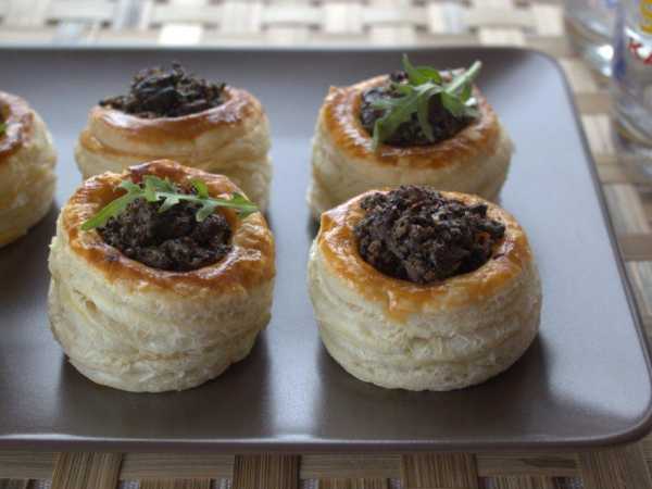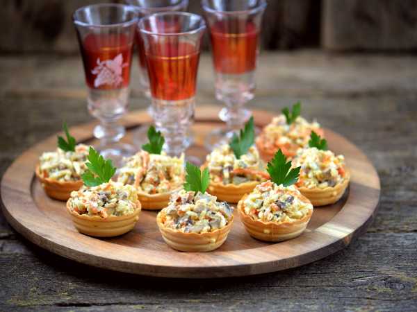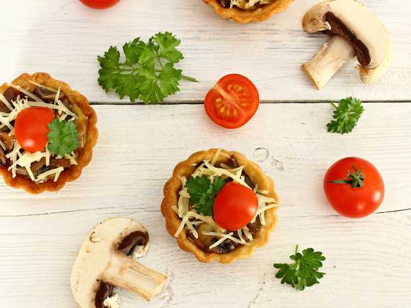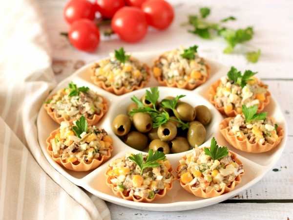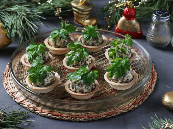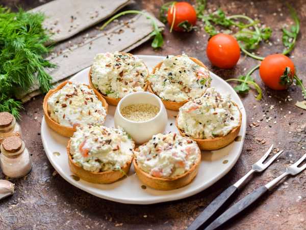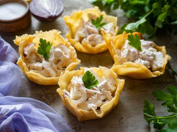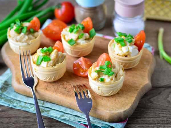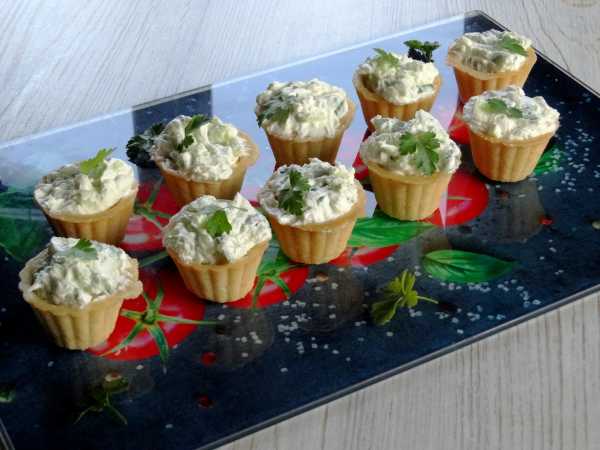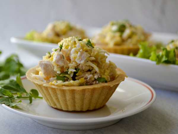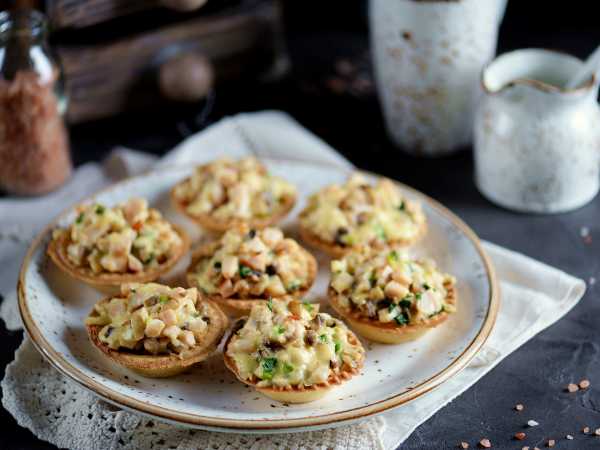 Наполните тарталетки куриной начинкой.