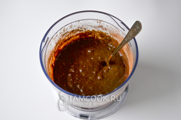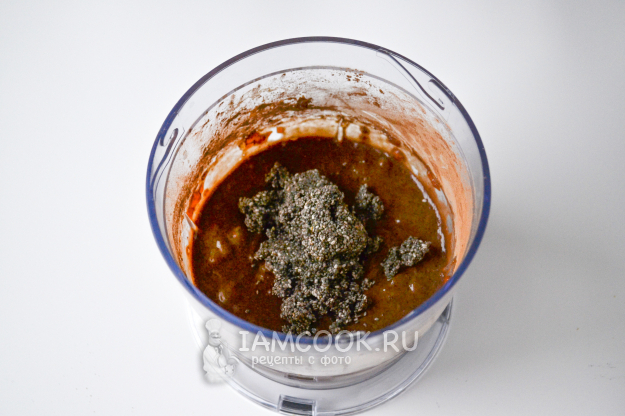 При помощи насадки металлический нож измельчите хурму с какао-порошком до однородной массы.