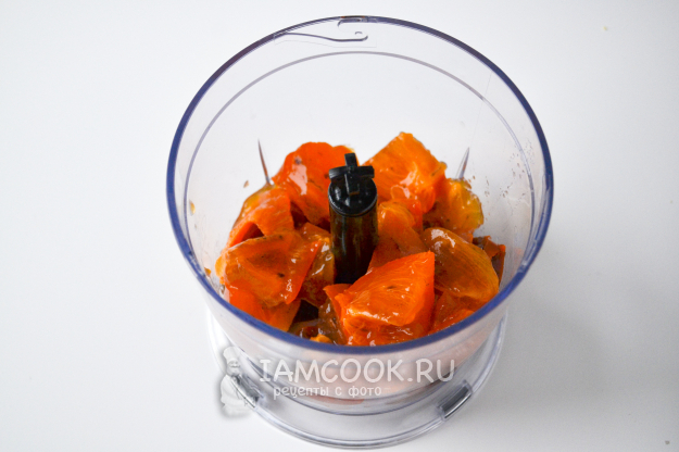 Нарежьте хурму на кусочки, уберите косточки, если есть. Нарезанную хурму положите в чашу измельчителя.