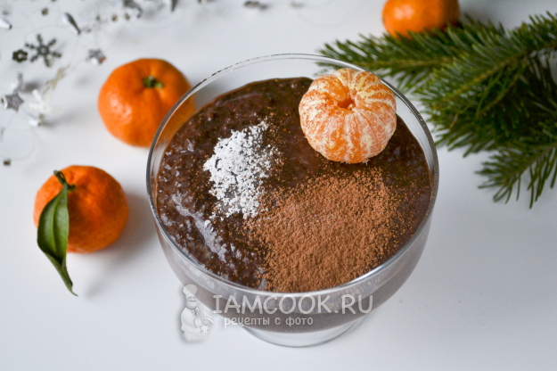 Спустя указанное время шоколадный десерт из хурмы готов к подаче. Украсьте пудинг по желанию и подавайте к столу. Можно посыпать сахарной пудрой, какао-порошком, кокосовой стружкой, украсить ягодами или кусочками фруктов.