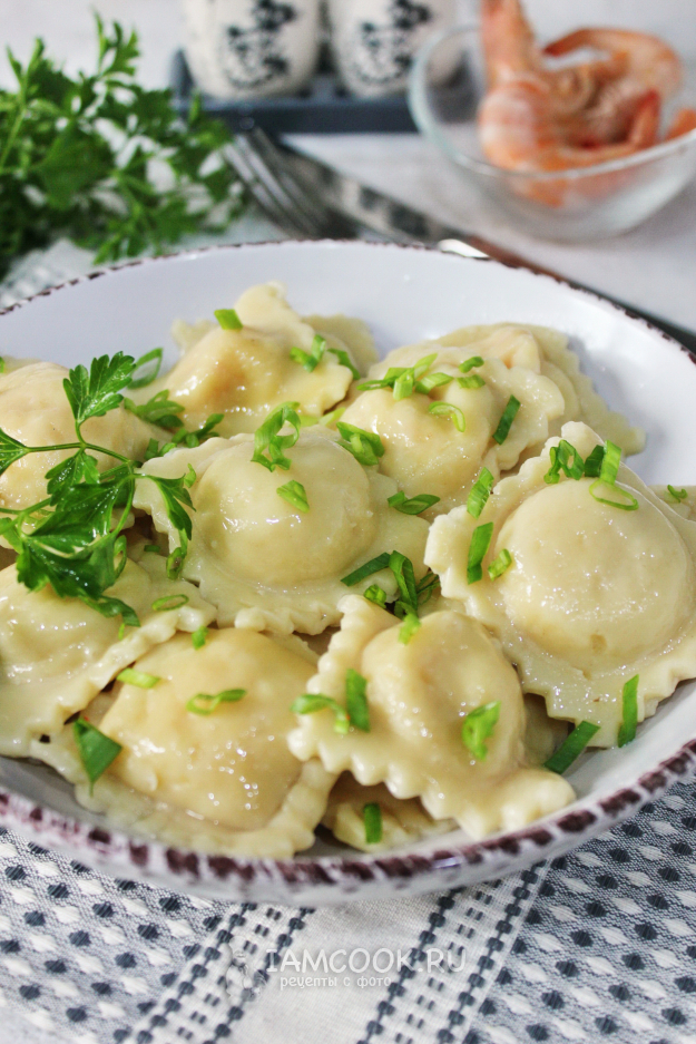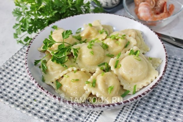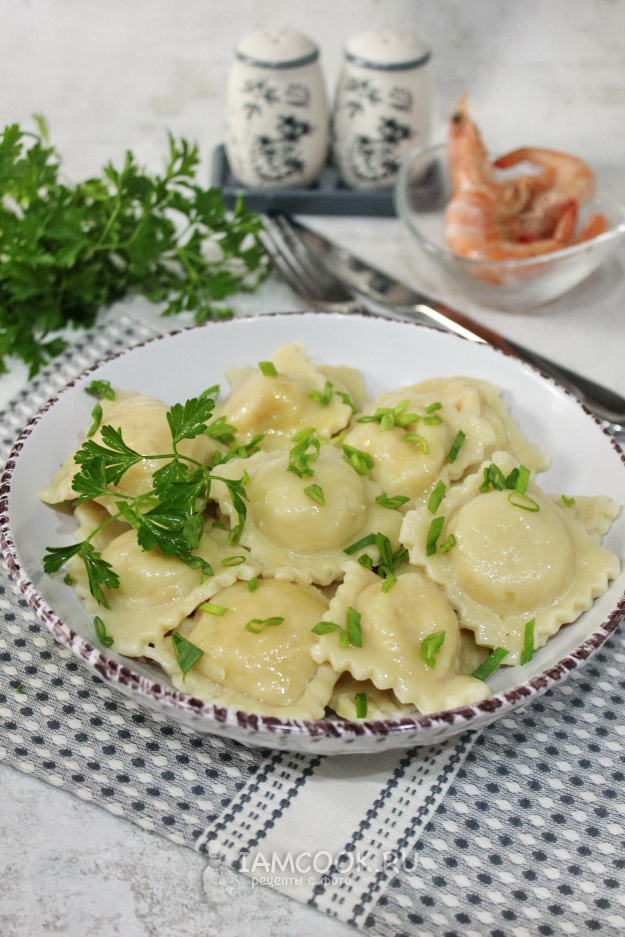 Равиоли с крабом и креветками готовы. Подавайте с соусами, тертым сыром.