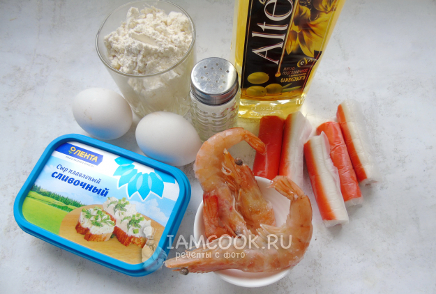 Соберите ингредиенты для приготовления равиоли с крабом и креветками.