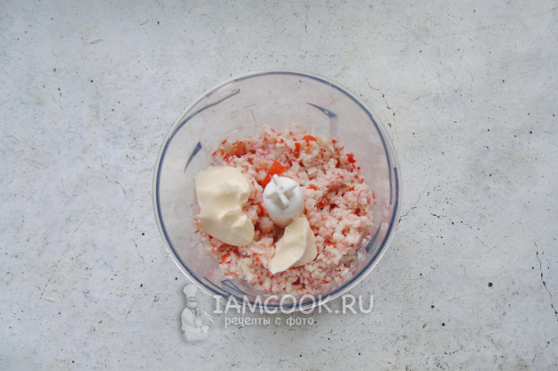 Измельчите до однородной консистенции и добавьте плавленый сливочный сыр.