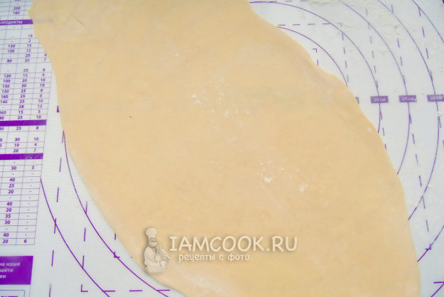 Тесто разделите на 4 части. Две части раскатайте в тонкий пласт, толщиной 2-3 мм.