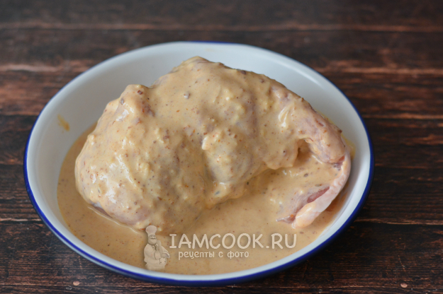 Залейте кусок свиной лопатки маринадом, помассируйте его хорошенько и уберите в холодильник мариноваться на сутки. Миску обязательно затяните плёнкой, чтобы ничего не заветрилось.