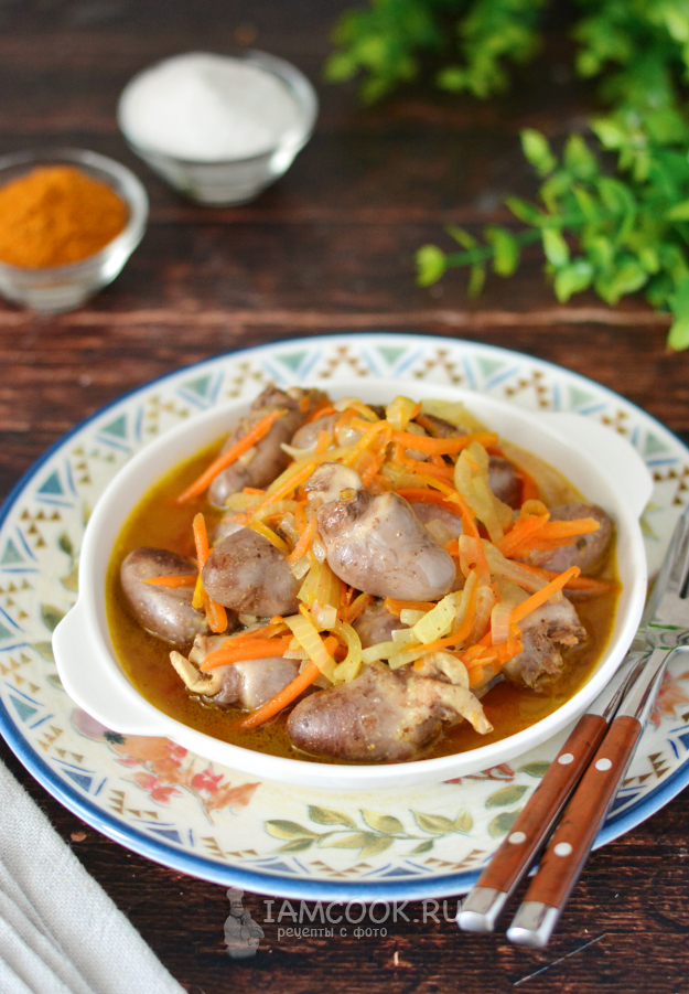 Утиные сердечки готовы. Поскольку в данном блюде много вкусного соуса, то его лучше подавать с гарниром.
