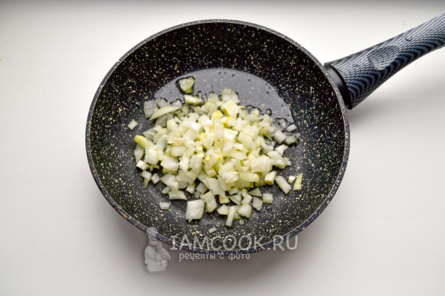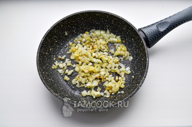 Помешивая, обжарьте лук до легкого золотистого цвета.