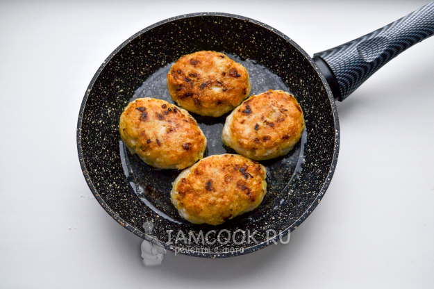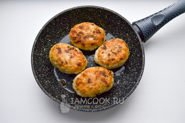 Положите котлеты на хорошо разогретую с растительным маслом сковороду. Первые 2-3 минуты жарьте котлеты на сильном огне, затем сделайте огонь тихим и жарьте до румяной корочки, 8-10 минут.