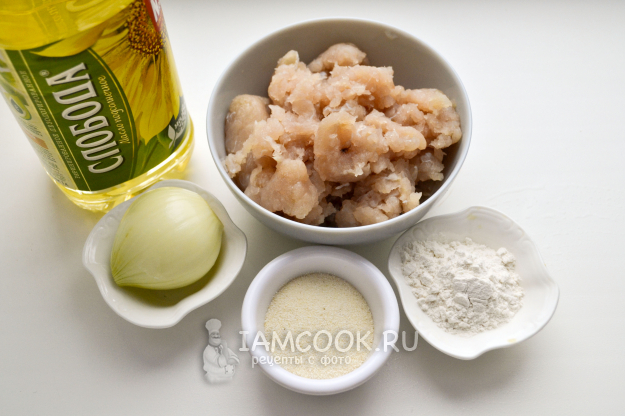 Соберите необходимые продукты для приготовления постных рыбных котлет из щуки.