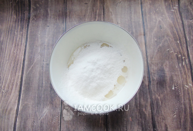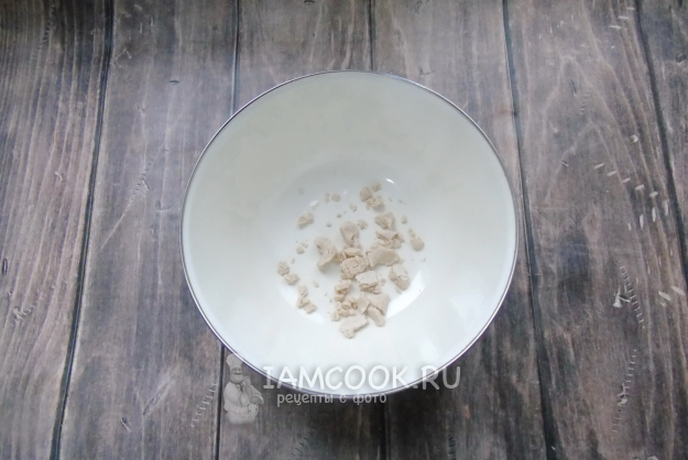 Приготовьте тесто для пирожков. В миску накрошите свежие, прессованные дрожжи.