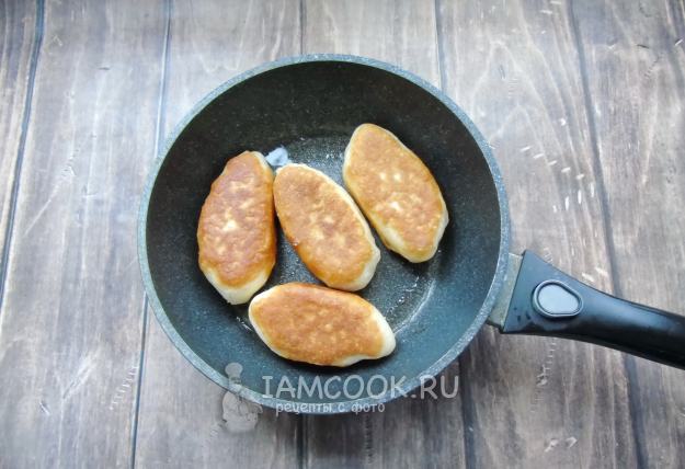 На горячую сковороду с растительным маслом выложите пирожки швом вниз. Жарьте с обеих сторон до золотистой корочки на огне ниже среднего.