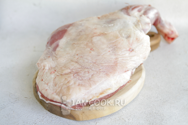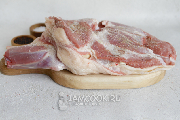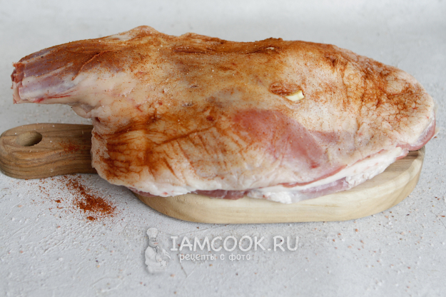 Жир с лопатки не срезаем. Есть мы, конечно, его не будем, но благодаря этой прослойке жира мясо во время запекания получается сочным и очень нежным.