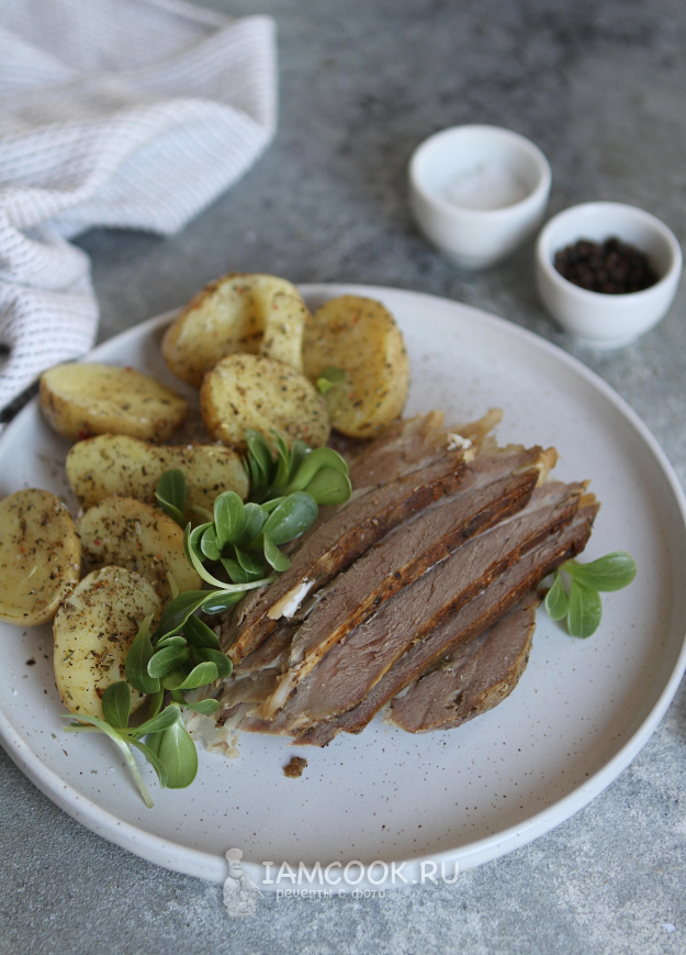 Мясо переложить на блюдо и подать к столу. Баранья лопатка, запеченная в фольге в духовке, хороша как в горячем, так и в холодном виде.