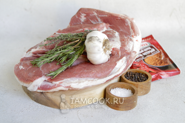 Для запекания бараньей лопатки в фольге в духовке соберите все продукты по списку. Вес лопатки составил у меня чуть больше 2 кг.