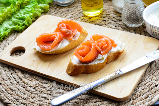 На бутерброды выложите кусочки маринованного лосося.