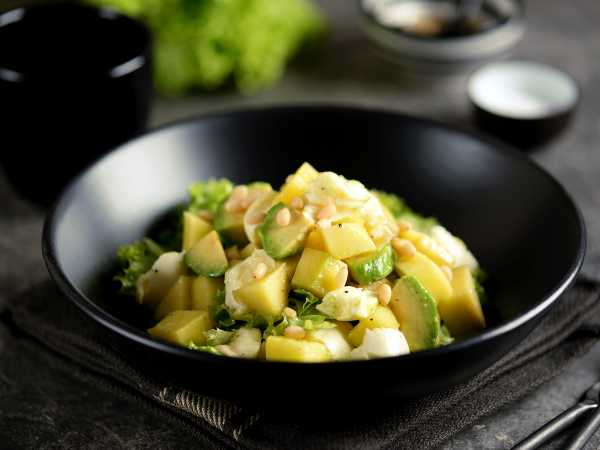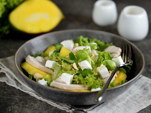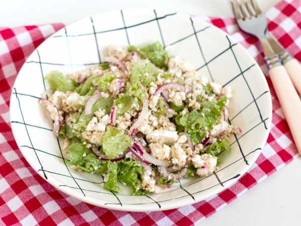 Если вы покупаете зелень на рынке, то ее необходимо хорошо промыть и обсушить на бумажном полотенце. Листья салата выложить в салатник.
