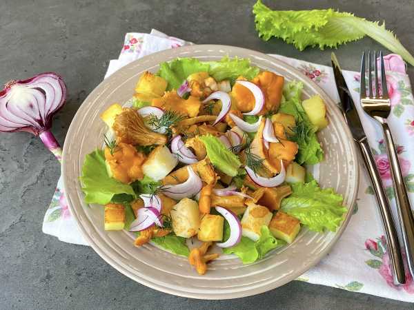 Заправляла салат я оливковым маслом с ароматом трюфеля. Вы же просто можете использовать классическое оливковое масло первого холодного отжима. Или приготовьте заправку из оливкового масла, лимонного сока и горчицы.