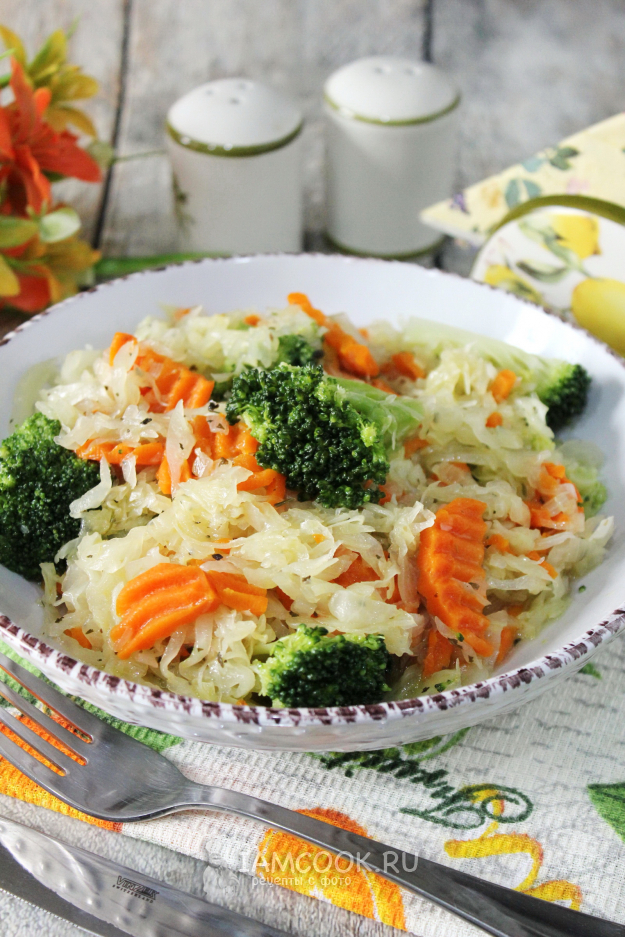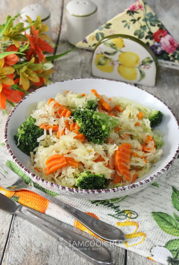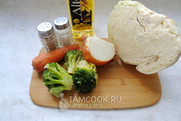 Соберите ингредиенты для приготовления тушеной капусты с брокколи.