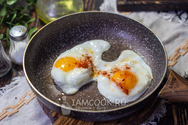 Пока готовится каша, пожарьте куриные яйца. Я сверху присыпала щепоткой сладкой паприки.