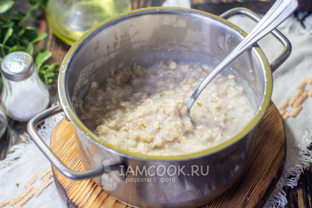Овсяные хлопья залейте водой и варите согласно инструкции, указанной на упаковке. Я варила 10 минут с момента закипания.