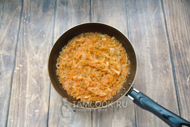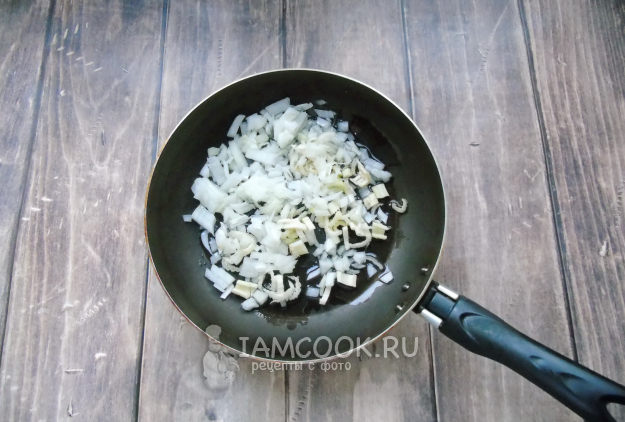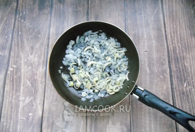 Налейте растительное масло и пассеруйте лук с сельдереем 5-6 минут.