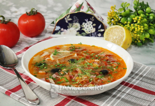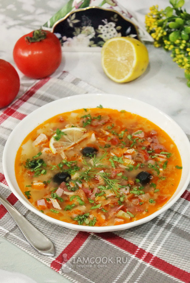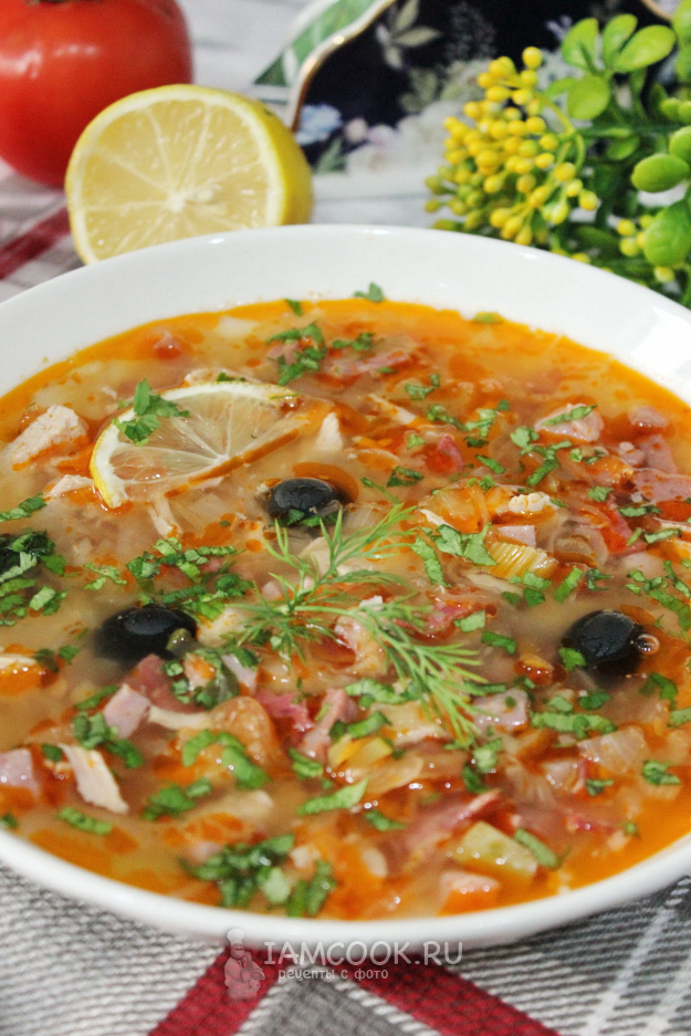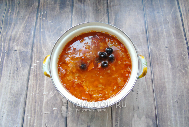 Соберите ингредиенты для приготовления солянки из квашеной капусты с мясом.