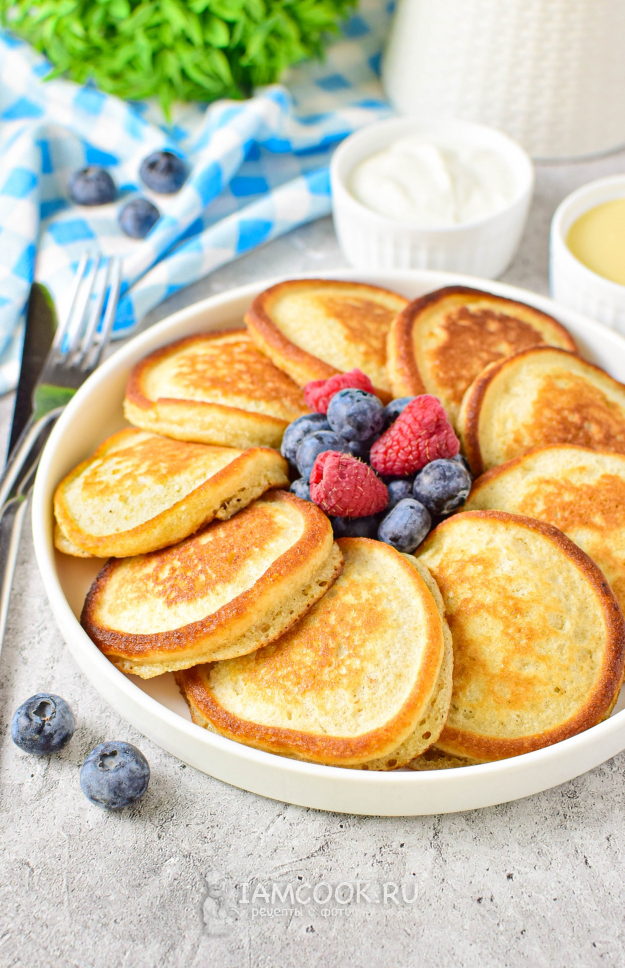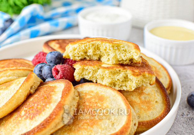 Дополните готовые оладьи сметаной, сгущенкой или джемом. Приятного аппетита!