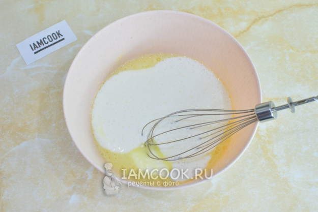 Для приготовления теста смешайте яйцо с сахаром и щепоткой соли.