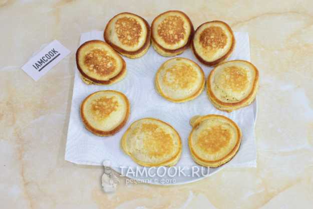 Готовые оладьи выложите на бумажное полотенце, чтобы пропитать с них лишнее масло.
