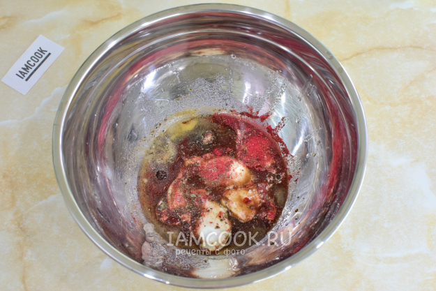 По вкусу подсыпьте соль и специи. В качестве специй я беру паприку, сушеный базилик, сушеный чеснок и молотый перец. При добавлении соли учитывайте, что соевый соус уже соленый. Все ингредиенты смешайте.
