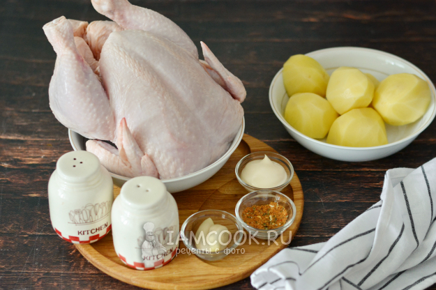 Для приготовления рулета из курицы с картошкой соберите все необходимые продукты по списку.