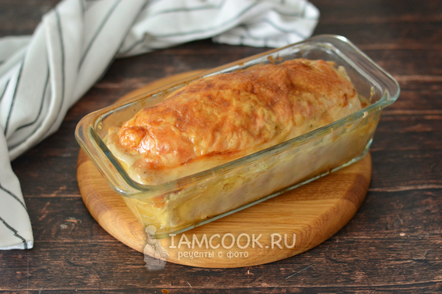 Установите температуру 150-160°С и запекайте рулет 1,5 часа. За это время картошка гарантированно приготовится внутри рулета.